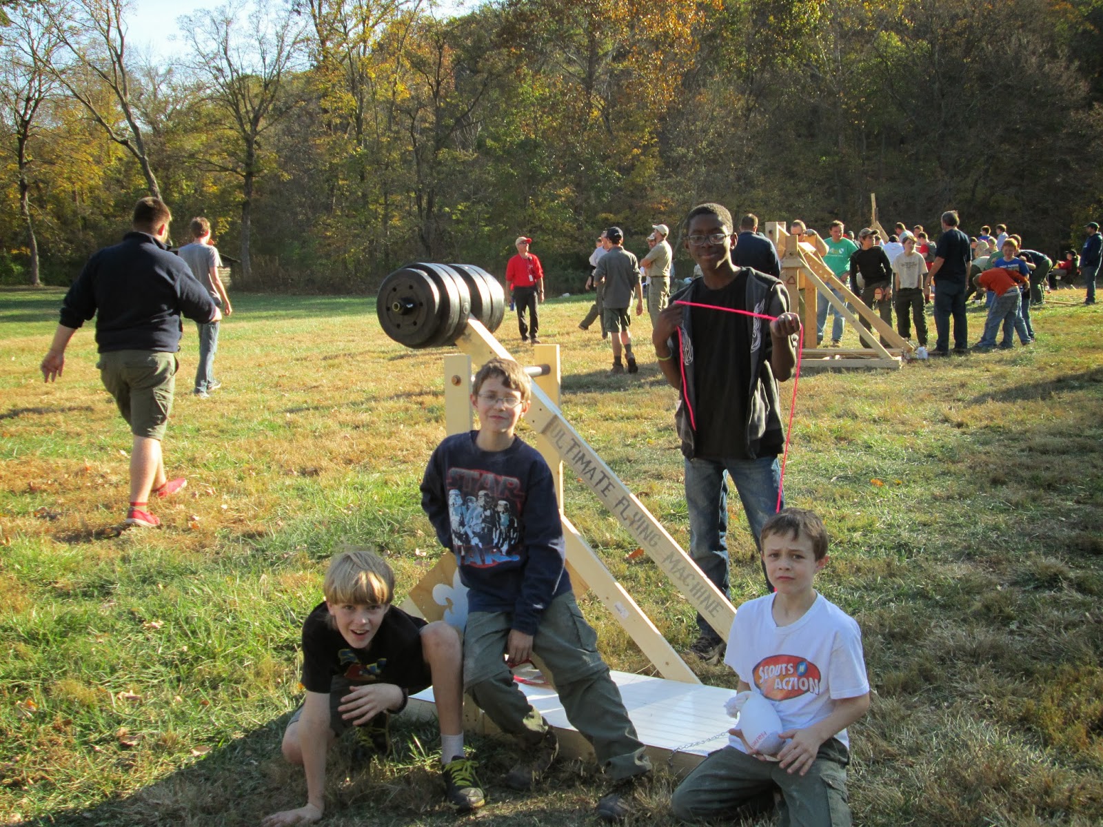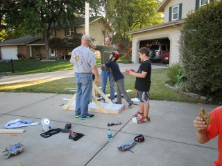 About a month ago Tyler got up in front of his Boy Scout troop to announce he would be heading up the trebuchet building team (should I mention here that he didn’t talk to mom or dad about what that commitment would mean? I don’t remember seeing Matt that upset for some time …) Anyway … Matt and the boys came through …