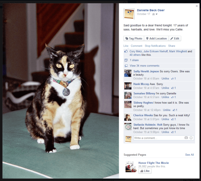 After 17-years with our family we said goodbye to Callie. It was a hard decision, but it was time. 20-years is a long time for a cat.